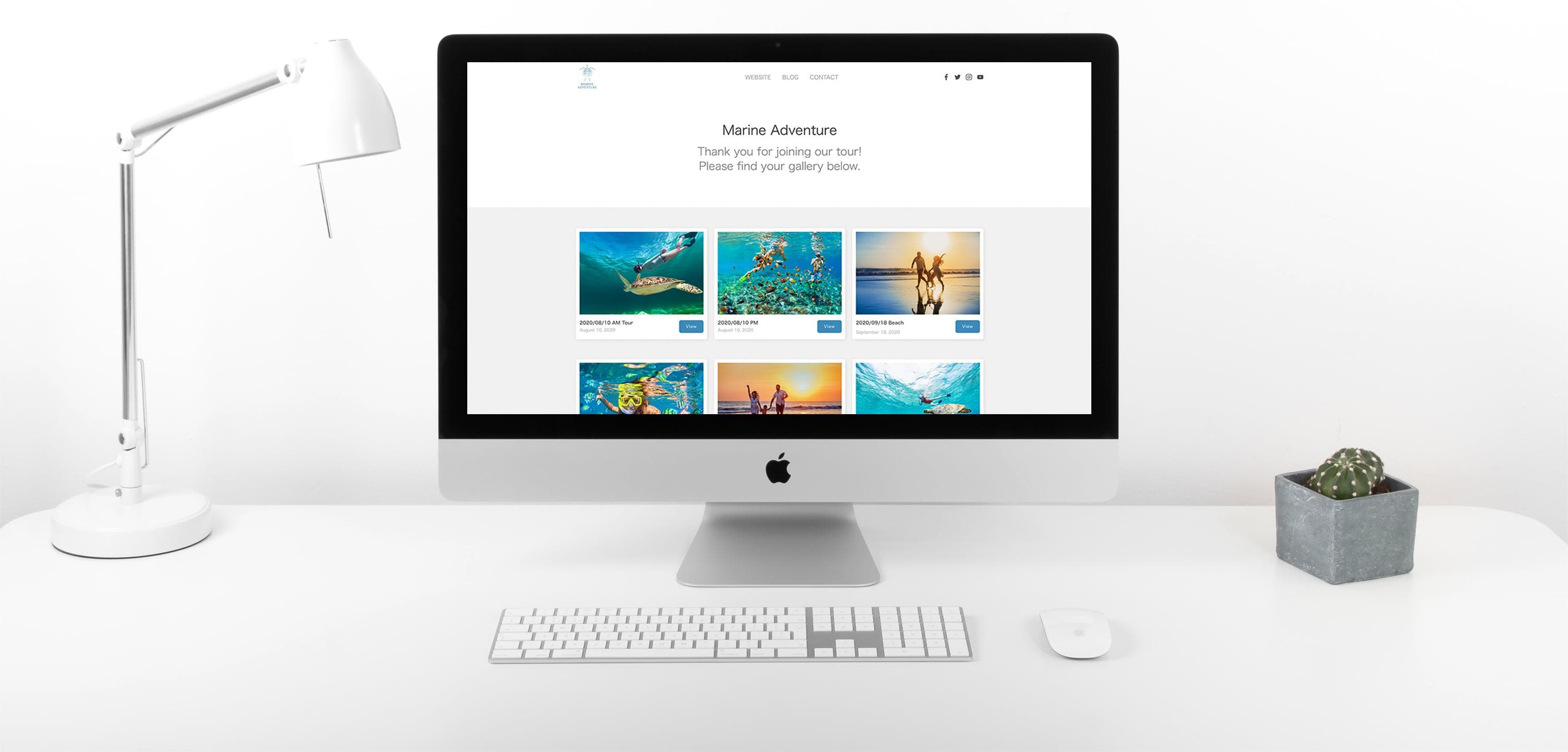 ツアーの後すぐデータをギャラリーへドラッグ&ドロップ。Phototreeの高速アップロードはお客様がお帰りの準備をしている間に完了し、その場で納品できるくらいの速さです!